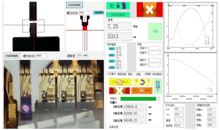 | 設(shè)備功能:用于100G及以上BOX光器件、硅光光模塊和DR光模塊的矩形微準(zhǔn)直透鏡/匯聚透鏡的全自動耦合,可以自動完成亞毫米尺度透鏡的拾取、姿態(tài)調(diào)整、耦合、點膠及固化。具有光斑和功率多種耦合手段。 |