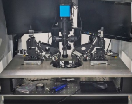 | 設(shè)備功能:實(shí)現(xiàn)對(duì)硅光芯片(探測(cè)器,調(diào)制器等)的光學(xué)耦合,并對(duì)其性能進(jìn)行測(cè)試。具有雙6維電動(dòng)耦合軸,可以實(shí)現(xiàn)保偏光纖與光柵的耦合。 |
